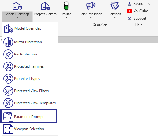 Whenever a user creates a new element or completes a command that has parameter prompts enabled, Guardian will prompt the user to input the information into the parameter value before continuing.